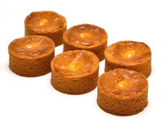 Hoge, compact gebakken huisgemaakte roomboter gevulde koek met zuivere amandelspijs gevuld.